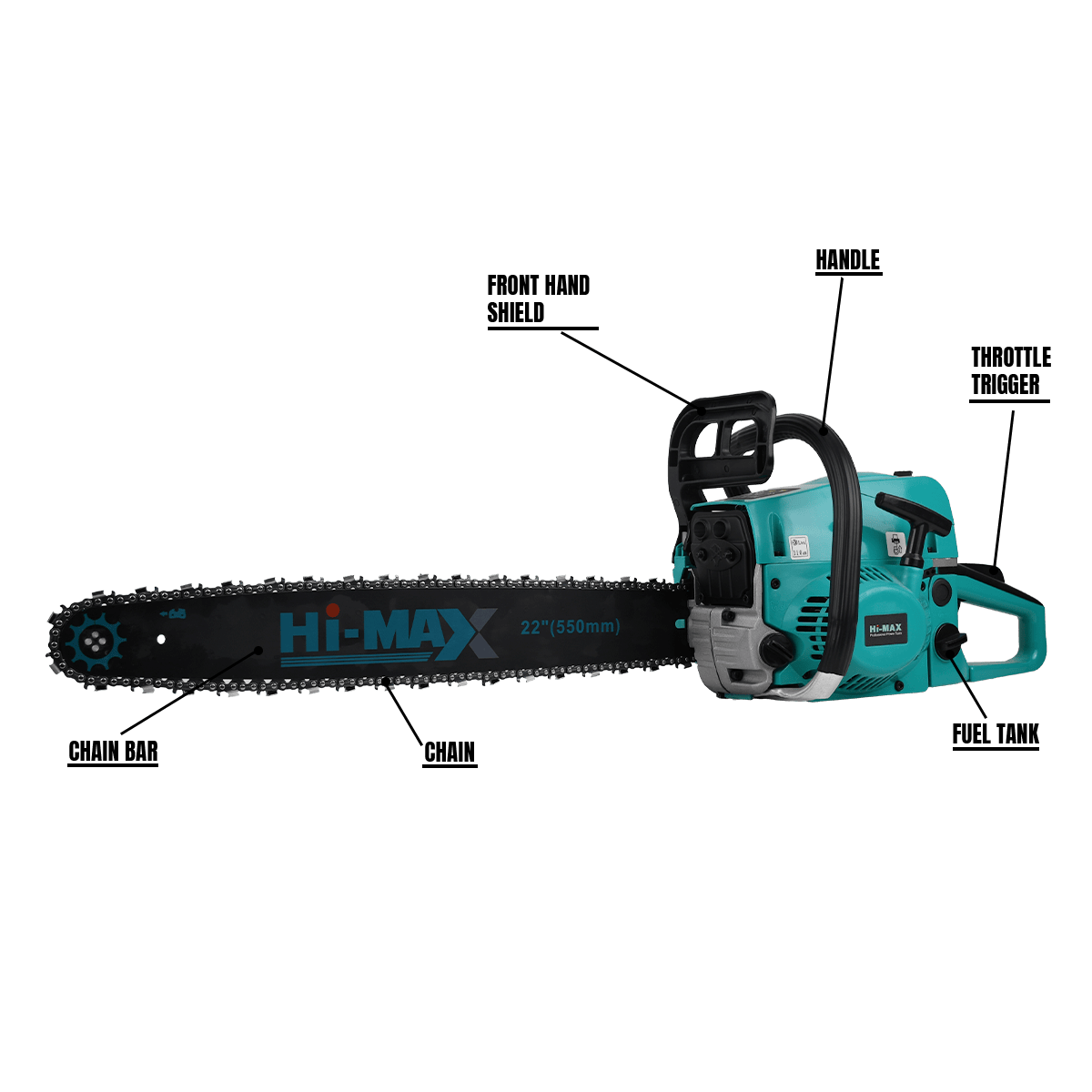 Looking for a compact, easy-to-use gasoline chain saw for high-power applications? HI-MAX IC–059A has a cutting width of 550 mm for the guide bar. The chain saw has a safe hold on the handle and gives a bar and chain locking system. It offers you a speed of 3000 RPM with a sharp arrangement of teeth for brisk and smooth outcomes. Extreme Engine with a power input of 2400 watts renders tree pruning, cutting, kicking, delimbing, hacking firebreaks in wildfire concealment, and kindling gathering work easily. The chain saw is proper for various activities and materials.
