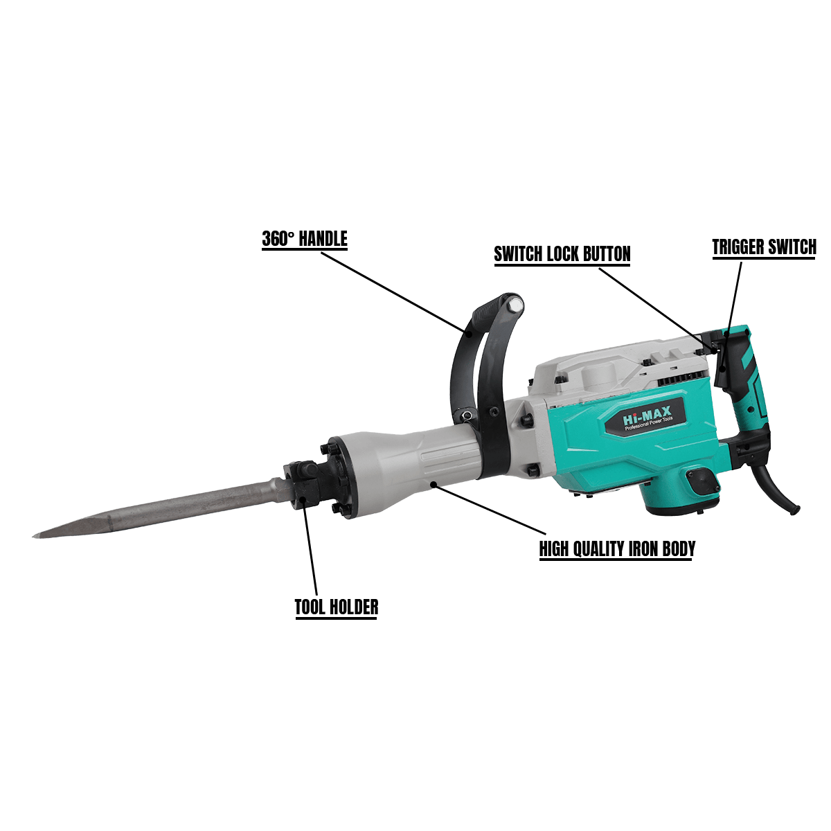 Starting the search for a reasonable and viable demolition hammer for extreme tasks? HI-MAX IC–065A with a diameter of Hex 30 mm for the chisel and convenience in performing activities. The device gives us a load-free pace of 1200 RPM for steady and dependable outcomes. The imposing electric motor with a current flow of 1400-watts makes the crumbling and hammering of hard materials effective. The demolition hammer is proper for the execution of modern evaluation jobs; as it consolidates etch pieces to lead to confounded workmanship work.
