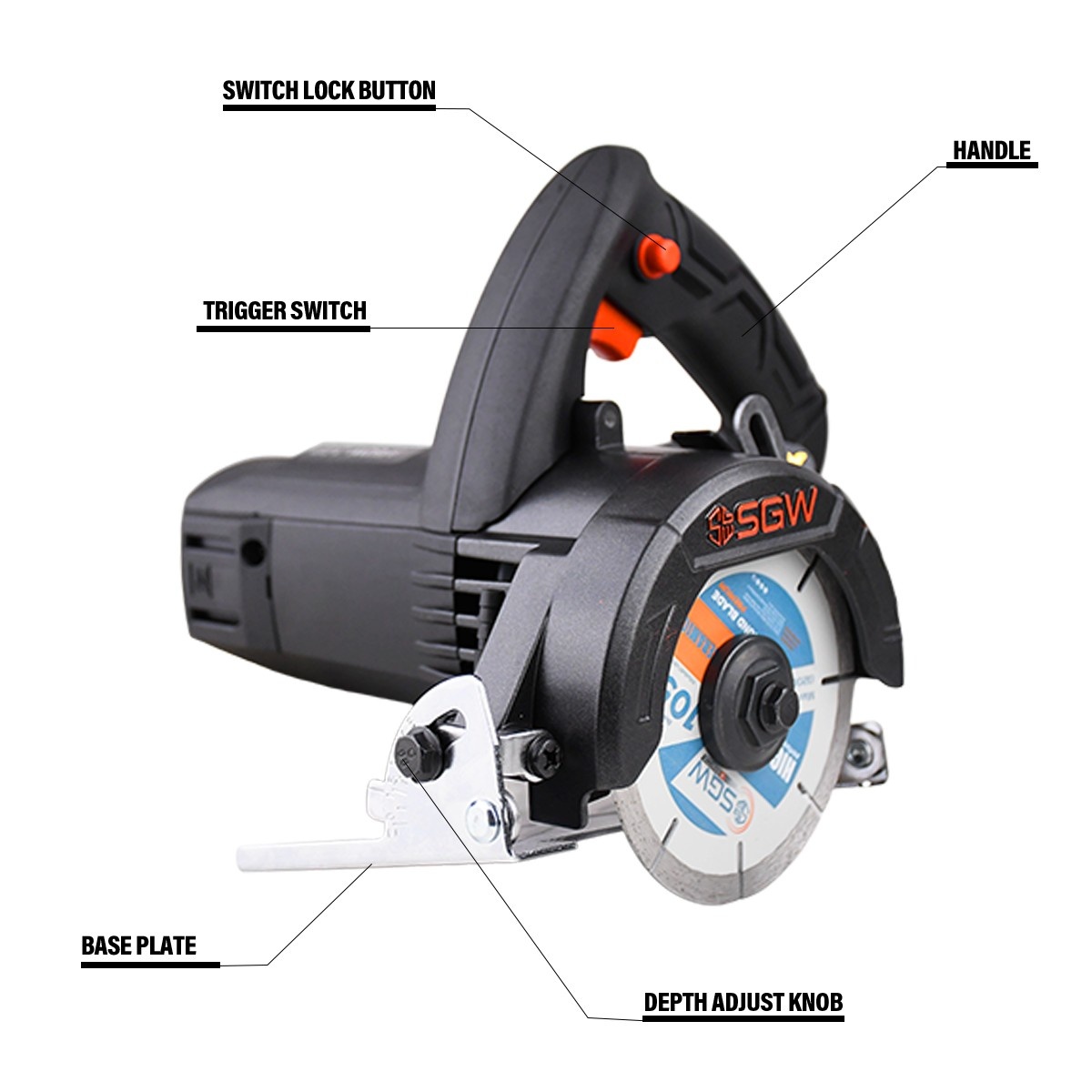 S-2121 Marble Cutter 110MM is a robust and efficient power tool that delivers exceptional cutting performance for various applications. With an impressive input power of 1650 W, this marble cutter features a super powerful motor that ensures optimal cutting precision and efficiency, even under demanding tasks. Operating at a no-load speed of 13000 RPM, it guarantees smooth, high-speed cutting, allowing users to achieve clean and accurate results with ease. The 110MM blade size is perfectly suited for precise cuts through marble and other materials, making it an indispensable tool for construction, renovation, and detailed stonework. Engineered with user convenience and safety in mind, the S-2121 Marble Cutter comes equipped with a switch lock button that facilitates continuous use without hand strain, perfect for extended projects. Its ergonomic handle design promotes user comfort and secure handling, minimizing fatigue during prolonged operation. Furthermore, the advanced dust insulation system enhances the motor's longevity by protecting it from dust and debris, ensuring consistent and reliable performance.