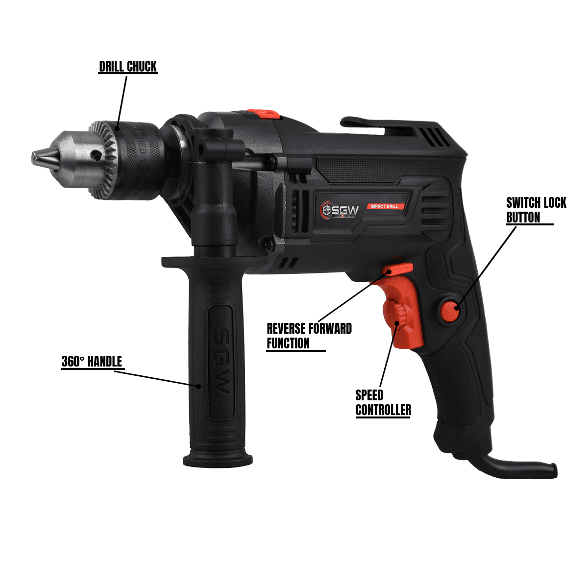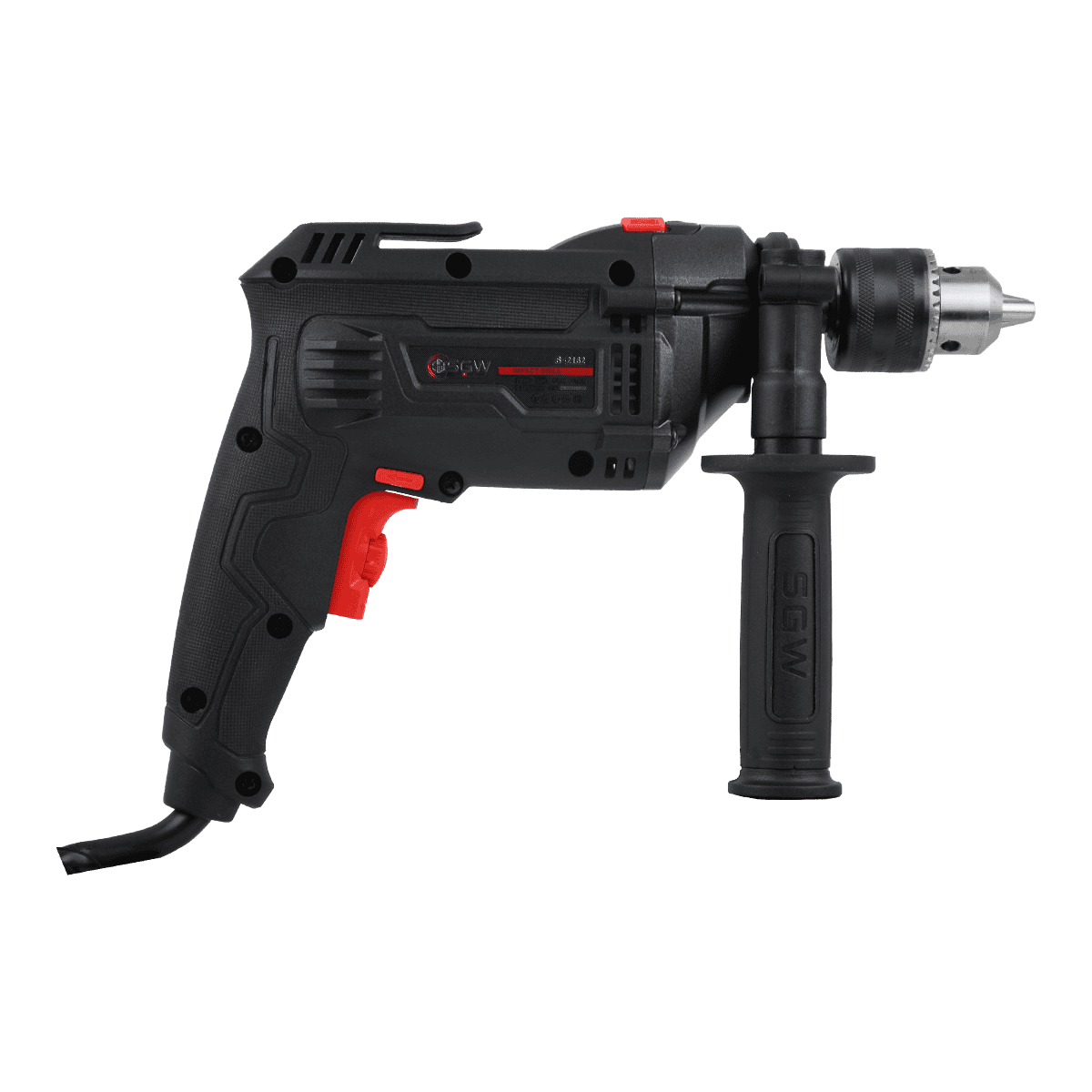 Searching for a powerful and reliable impact drill machine? The SGW S-2162 Impact Drill (13 mm) is designed for efficient and precise drilling across different materials. With a drilling capacity of 13 mm and a no-load speed of 0–2800 RPM, it delivers smooth performance and accurate results for professional and DIY tasks. Powered by a strong 800-watt electric motor, this drill ensures consistent performance and durability during continuous use. Operating on 220V with 50 Hz frequency, it provides stable power for demanding applications. The reverse and forward function allows easy screw driving and removal, while the switch lock button enables comfortable operation during longer tasks.Built with a double insulation electric corded system and a sturdy black body design, the SGW S-2162 offers safety, reliability, and a firm grip for better control. Whether you are drilling holes or fastening screws, this impact drill is a dependable tool for everyday workshop and construction needs.