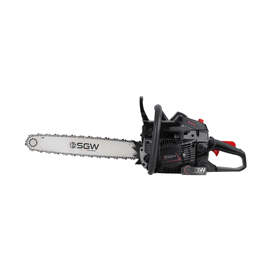 S-2185 Gasoline Chain Saw is a powerhouse tool designed for superior cutting performance and efficiency. This model boasts a robust 2.8kW/3.8hp engine with 58cc displacement, delivering the strength needed for even the toughest woodcutting tasks. Equipped with a large 450mm chain bar, it ensures a seamless cutting experience across various types of wood. Its 600ML fuel tank and 260ML oil tank capacities offer extended runtime, minimizing the need for frequent refills and enhancing work efficiency. Safety is a top priority with the S-2185, which features a specific safety brake system to reduce risk during operation. This brake mechanism provides an added layer of protection, allowing users to work with confidence and peace of mind. The advanced ignition system ensures powerful, smooth engine operation, making start-up and cutting consistent and reliable. Additionally, the S-2185 is designed with a specialized exhaust system that reduces fuel consumption, allowing for longer work sessions with lower fuel costs. This design also minimizes gasoline emissions, making it a more environmentally conscious choice for users seeking both performance and efficiency. With its combination of power, safety, and eco-friendly features, the S-2185 Gasoline Chain Saw is built to meet demanding cutting needs while prioritizing safety and sustainability.