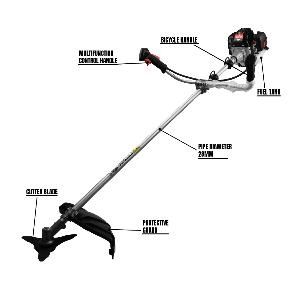 The S-2189 Brush Cutter is a powerful and reliable tool, crafted to handle even the most challenging gardening and landscaping tasks with ease. Designed with a robust 43cc, high-power 2-stroke engine, this brush cutter delivers an impressive output of 1.6 Kw, ensuring exceptional performance in heavy-duty operations. Its high-torque engine is specially built to tackle tough, overgrown areas with minimal strain, offering both efficiency and durability in challenging conditions. Equipped with an ergonomic aluminium bike-style handle, complete with a rubber cover, the S-2189 Brush Cutter offers increased comfort and precision in control, making extended use more manageable and less tiring. The durable, high-quality steel shaft ensures a longer life span, providing the reliability you can count on for all your gardening and maintenance needs. With a maximum speed range of 2800-3200 RPM and a fuel tank capacity of 1000 ML, this brush cutter keeps you working longer with fewer interruptions. The advanced ignition system guarantees smooth and powerful running, while the 28 MM tube diameter and 30:1 oil/fuel mixing ratio enhance its operational efficiency. The S-2189 is the ideal solution for those requiring a heavy-duty brush cutter that combines power, durability, and user comfort.