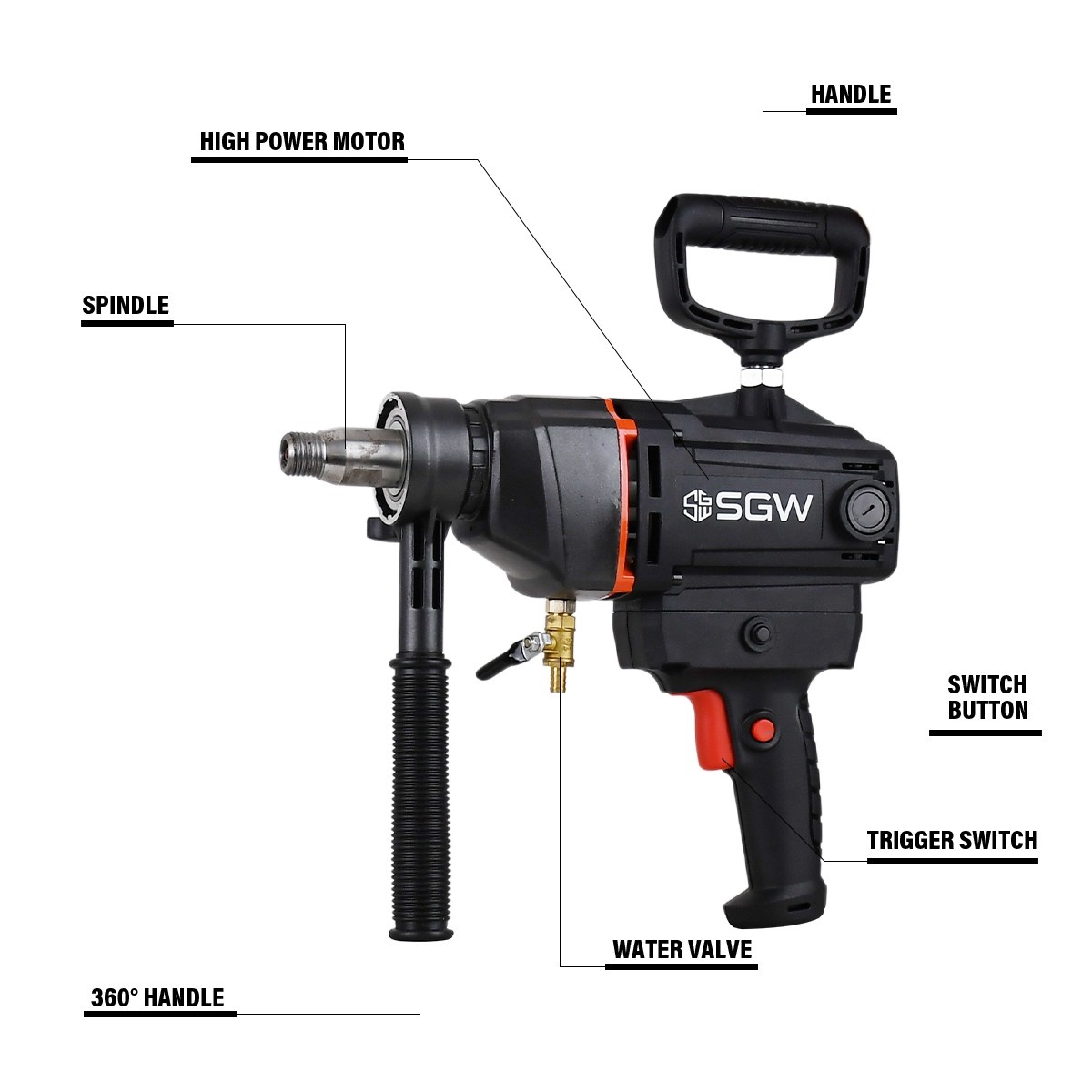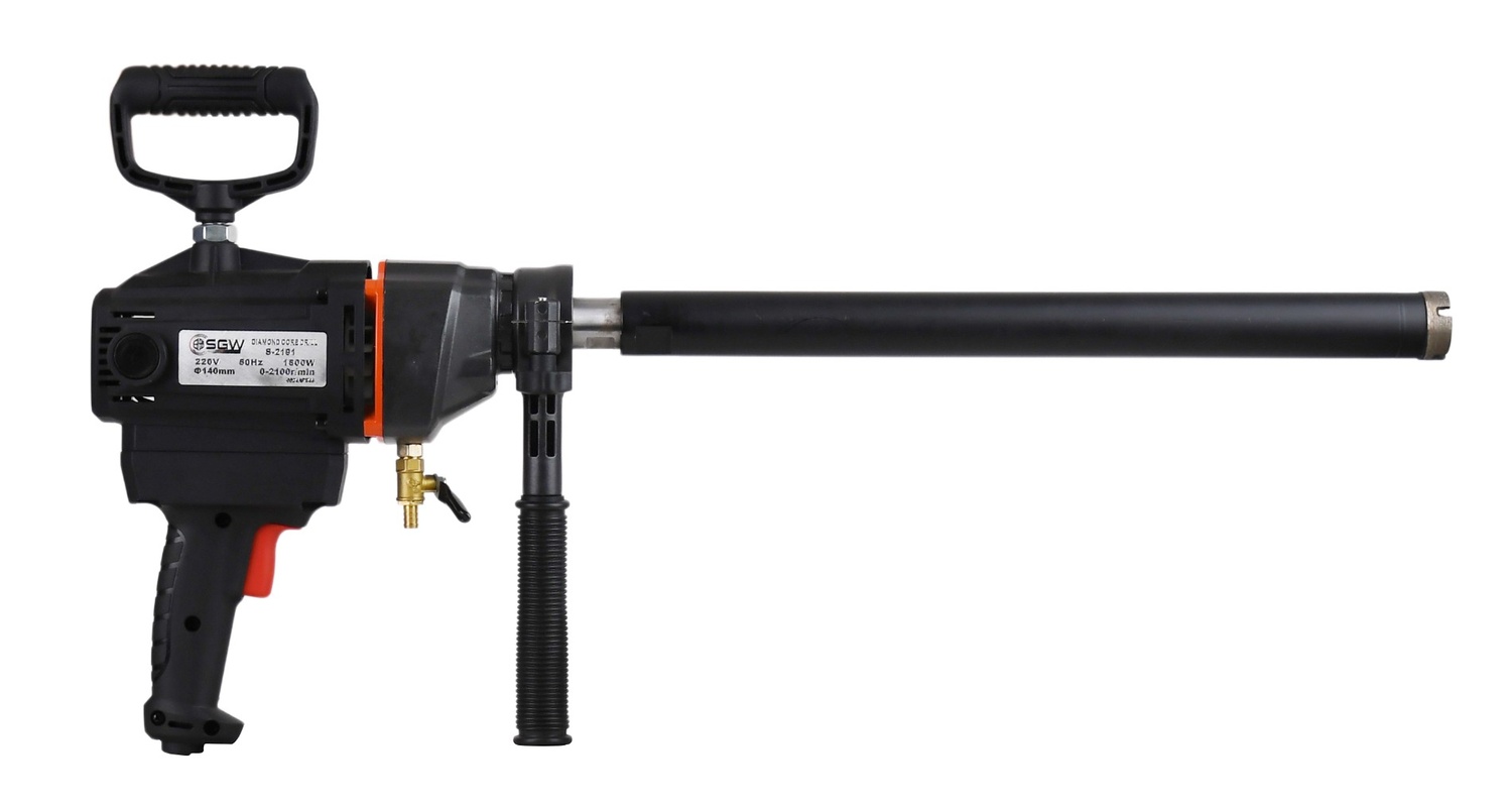 The S-2191 Diamond Core Drill 140MM is an essential tool for precision drilling in brick and concrete surfaces. Designed with a powerful 1800W motor, this versatile drill operates with a no-load speed of 0-2100 RPM, ensuring smooth and efficient performance across a wide range of applications. With a drilling capacity of 20-140mm in brick and 20-110mm in concrete, it offers exceptional versatility for both professional and DIY projects. Featuring a 360° handle for a more comfortable grip, the S-2191 ensures user-friendly operation, while its lightweight design enhances maneuverability. Built for both dry and wet bit use, this drill includes advanced safety features like current overload protection and an in-built mechanical clutch gear, safeguarding the motor and gears during operation. Suitable for heavy-duty tasks, this diamond core drill is the ideal solution for achieving reliable results in various construction and renovation projects.
