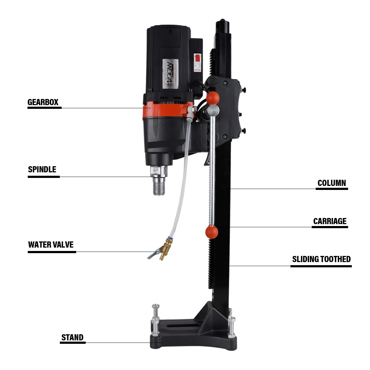 The S-2192 Diamond Core Drill is a powerful and efficient tool designed for high-demand drilling tasks. With its robust 3500W input power and a no-load speed of 780 RPM, it can easily handle various materials with precision and speed. This versatile core drill is engineered to manage a drilling capacity ranging from 20 to 225mm for brick and 20 to 200mm for concrete, making it ideal for construction and masonry applications. This model is equipped with a double insulation structure, ensuring reliable and safe operation. Its waterproof design, featuring a new mechanical seal, provides enhanced durability, while the switch overload protection and in-built mechanical clutch gear safeguard both the machine and the operator. Additionally, a specially designed drain valve allows for the convenient discharge of water from the seal, ensuring longevity and consistent performance. Compact and portable, the S-2192 Diamond Core Drill is perfectly suited for working at heights, offering a practical solution for professionals who require mobility and efficiency in demanding environments.