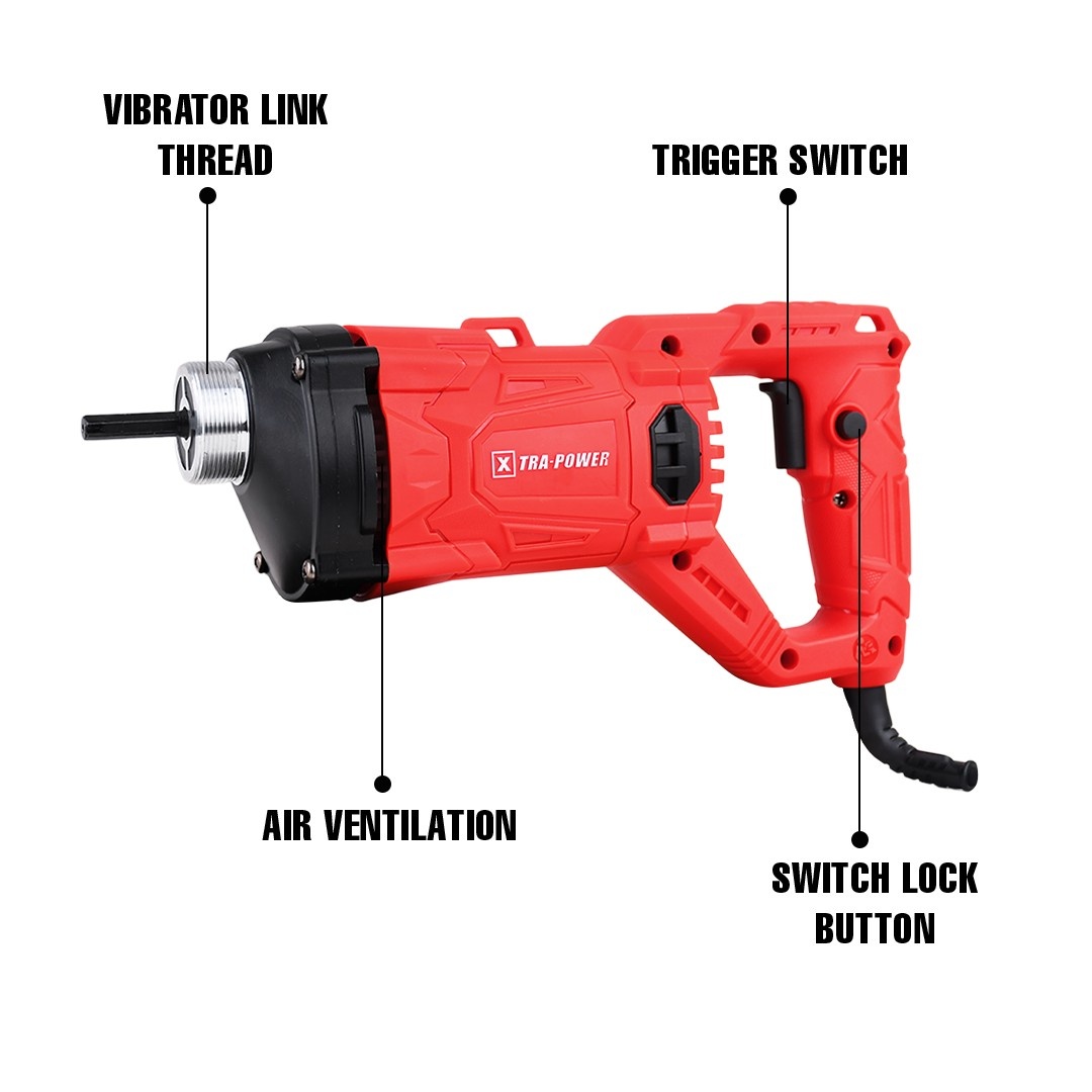Seeking a satisfying, durable concrete vibrator for heavy-duty tasks? XTRA-POWER XPT 447 Concrete Vibrator with a length of 1.5 M and a high-strength rod. The machine provides you with a load-free speed of 4000 RPM for fair productivity. The main purpose of the electric concrete vibrator is to vibrate the concrete and ensure that there will be no air pockets within it, and the powerful electric motor with a functioning force of 1200 watts makes the whole process successful. It is intended to be used in industries when conducting cement processes. The concrete vibrator uses a simple yet effective method. It is designed in order to provide a balanced and safe hold on an amazing body.