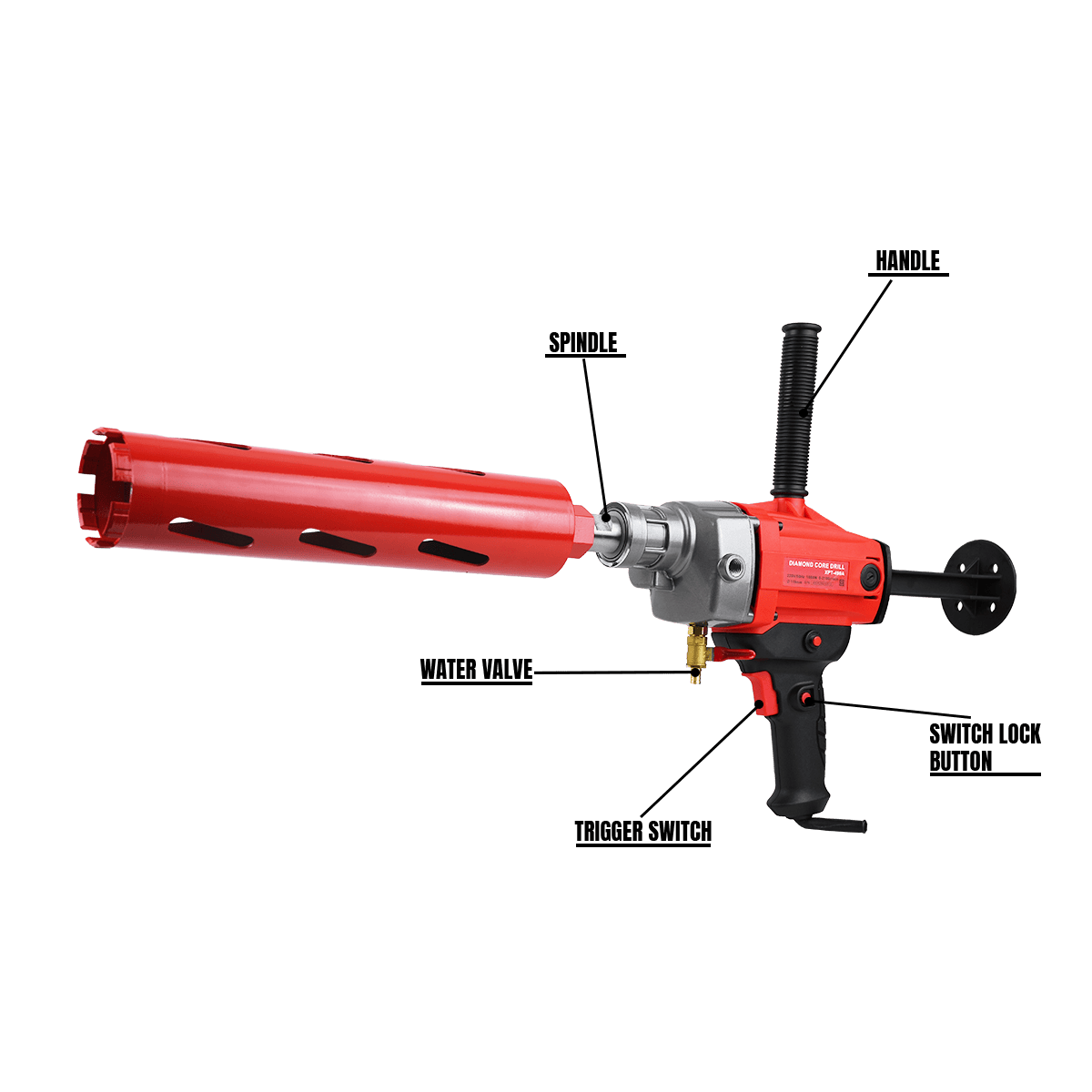 Searching for a minimal and energetic core drill for powerful applications? XTRA-POWER XPT 490A with a diameter of 119 mm for the drill zone. The core drill has a solid hold on the body and accompanies a wellbeing lock. It empowers a load-free speed of 2100 RPM for snappy and consistent quality results. Handle positions available on three faces for smooth and comfortable work. The ground-breaking motor with an energy contribution of 1880-watts renders different errands powerful. The core drill is ideal for different exercises and materials as it very well may be utilized for the making of ways for plumbing and waste lines, space for electrical wiring including telephone and link lines, the establishment of warming, ventilation, and cooling frameworks, street centers, sewer vents, strength test openings and significantly more