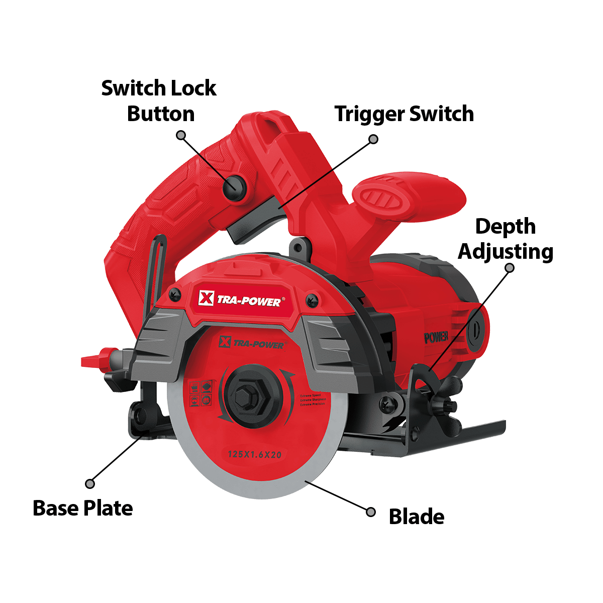Equipped with a 1450 Watts motor, the Xtra Power XPT 560 marble cutter delivers powerful and steady performance, easily handling heavy-duty tasks without compromising speed or precision. It boasts a remarkable no-load speed of 13000 RPM for rapid cutting, enhancing efficiency in task completion. The cutter's 125MM blade capacity offers versatility for different cutting needs, slicing through various materials with clean and precise cuts. It achieves a maximum cutting depth of 30MM, allowing flexibility in handling diverse materials and thicknesses. For safety and convenience, it includes a Switch Lock Button, providing enhanced safety and control during operation. Its ergonomic design features a compact and lightweight structure, ensuring easy handling and maneuverability. Additional features like a dust-sealed switch and a water line for wet cutting further enhance the cutter's functionality and durability. Ideal for both intricate designs and straight cuts, this marble cutter is a valuable addition to any toolkit, offering precision, power, and safety.
