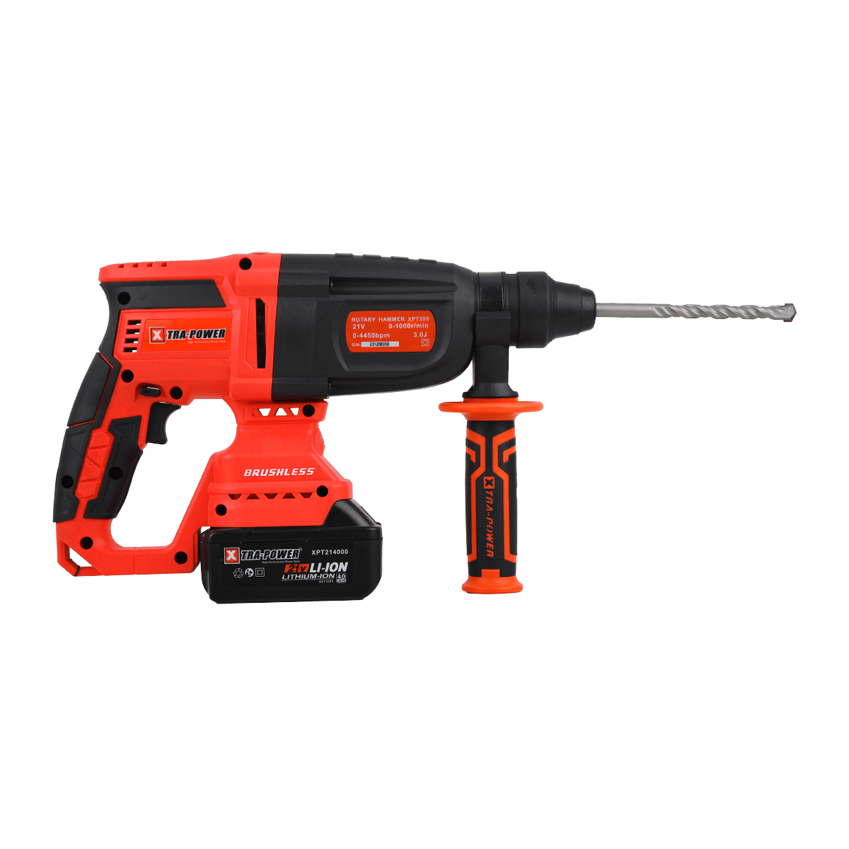 The XPT 595 Cordless Rotary Hammer is designed for professional use, blending power, flexibility, and durability into one efficient package. It boasts a no-load speed of 0-1000 R/MIN and an impact energy of 3J, ensuring efficient drilling and chiselling in hard materials. With a battery power of 4.0 Ah and a 21 V system, it offers long-lasting performance for uninterrupted work sessions. Its practical and compact design facilitates easy handling and operation, while its robust construction with metal gearing enhances performance and durability. The inclusion of SDS and chisel drill bits adds versatility, making it suitable for a variety of heavy-duty tasks. This model supports a 26 mm diameter for diverse drilling depths and provides a consistent quality across operations, including rotary, hammering, and rotary hammering functions. An essential tool for professionals, the XPT 595 Cordless Rotary Hammer focuses on user comfort, efficiency, and safety, making it a valuable addition to any tool collection.