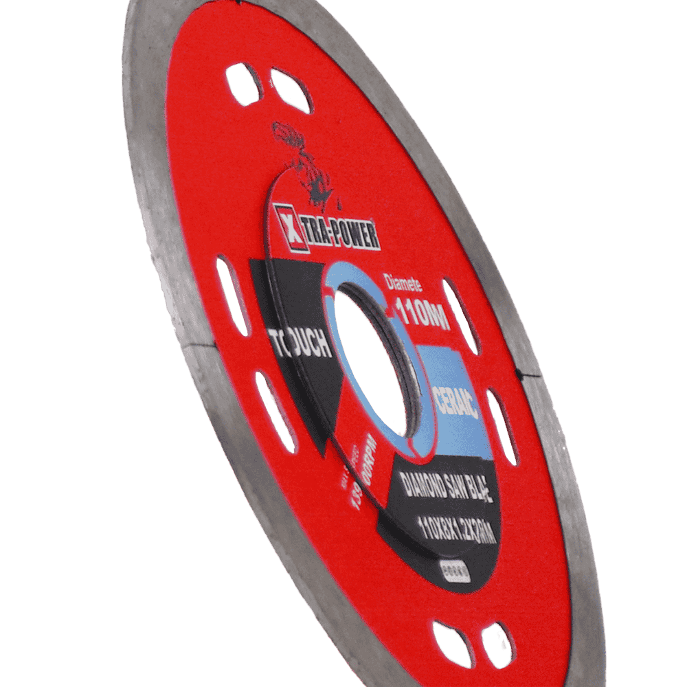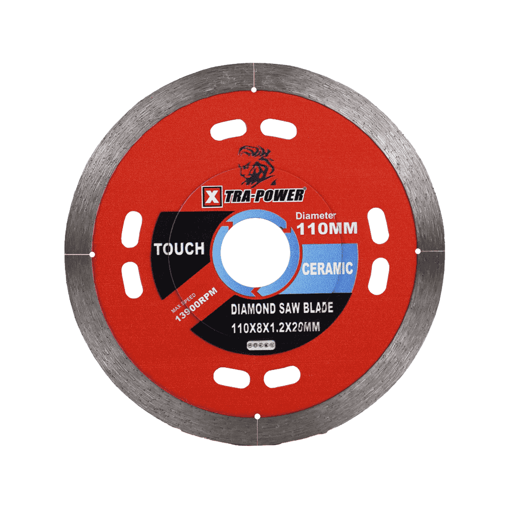 Xtra Power Touch Ceramic Diamond Saw Blade (110MM) is specially engineered for precise and clean cutting of ceramic materials. Built with high-quality diamond segments, this blade delivers smooth, chip-free results while maintaining excellent durability in demanding applications. Its robust construction ensures long service life, while the optimized design helps reduce vibration for better stability and control. With a 110MM diameter and a 20.00MM arbor hole, it is compatible with a wide range of cutting machines. The Xtra Power Touch Ceramic blade is an ideal choice for professionals and DIY users who require accuracy, efficiency, and reliable performance when working with ceramic tiles.